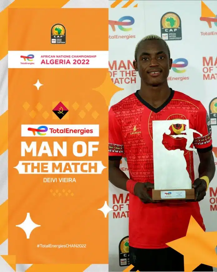 Deivi Miguel Vieira a été désigné homme du match qui a opposé l’Angola à la Mauritanie (0-0) ce vendredi 20 janvier au CHAN 2022. L’ailier droit angolais a été plus en vue dans la rencontre et a été distingué pour sa performance.L